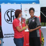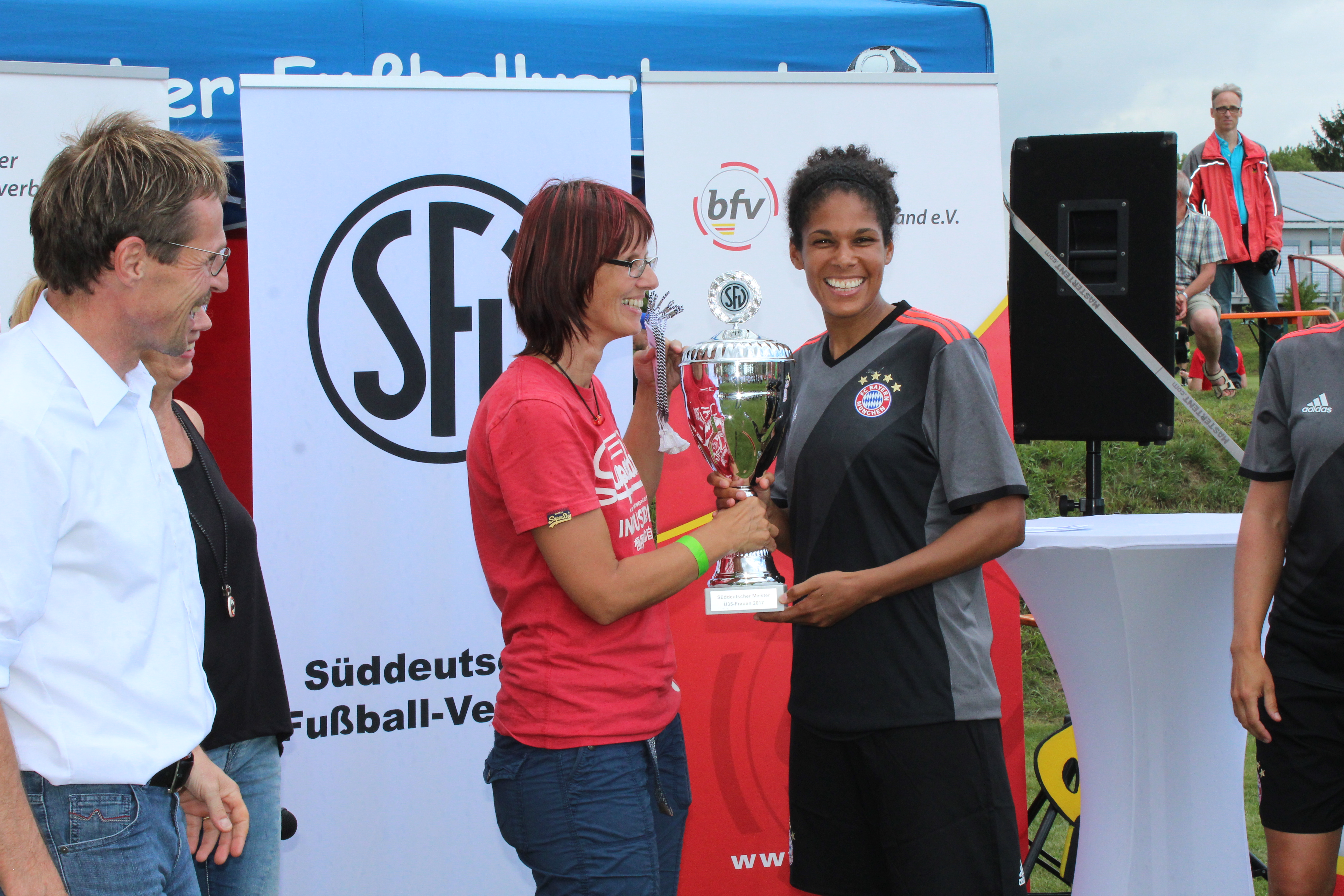 en für Verärgerung sorgte. Davon unbeeindruckt bewahrte die Schützin des FC Bayern die Nerven und verwandelte zum 1:1-Ausgleich, was nicht nur den Endstand der Begegnung, sondern für den FC Bayern München aufgrund der besseren Tordifferenz zugleich auch den Turniersieg mit sich brachte, der im Rahmen der Siegerehrung gebührend gefeiert wurde. Die SGM Gomadingen/Tettnang hatte sich zuvor mit einem deutlichen Erfolg über den SSV Waghäusel zumindest noch den Bronze-Rang gesichert. Die Vorsitzende des SFV-Ausschusses für Frauen- und Mädchenfußball, Prof. Dr. Silke Sinning, sowie der Vizepräsident des Badischen Fußballverbandes, Jürgen Galm, überreichten den Mannschaften nach Abschluss der Turnierspiele die Trophäen, bedankten sich für die spannenden und stets fair geführten Begegnungen und wünschten dem FC Bayern München viel Erfolg für den anstehenden DFB-Cup.